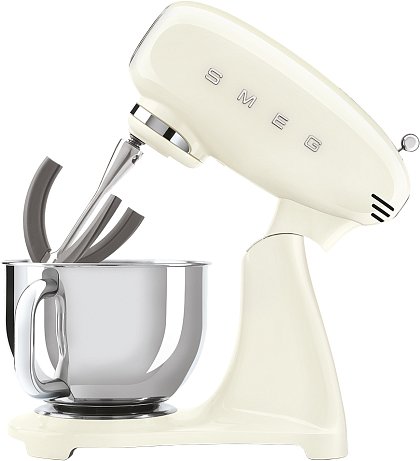Планетарный миксер SMEG SMF03CREU, выполненный в стиле 50-х годов, подчеркнёт индивидуальность интерьера и станет настоящим украшением Вашей кухни в квартире или загородном доме. Предназначен для приготовления кремов, муссов, соусов, пюре и жидкого теста. Применение специальных насадок позволяет существенно расширить ассортимент приготавливаемых блюд. С их помощью данную модель можно использовать в качестве тёрки или мясорубки, а также для приготовления различных блюд итальянской кухни.
